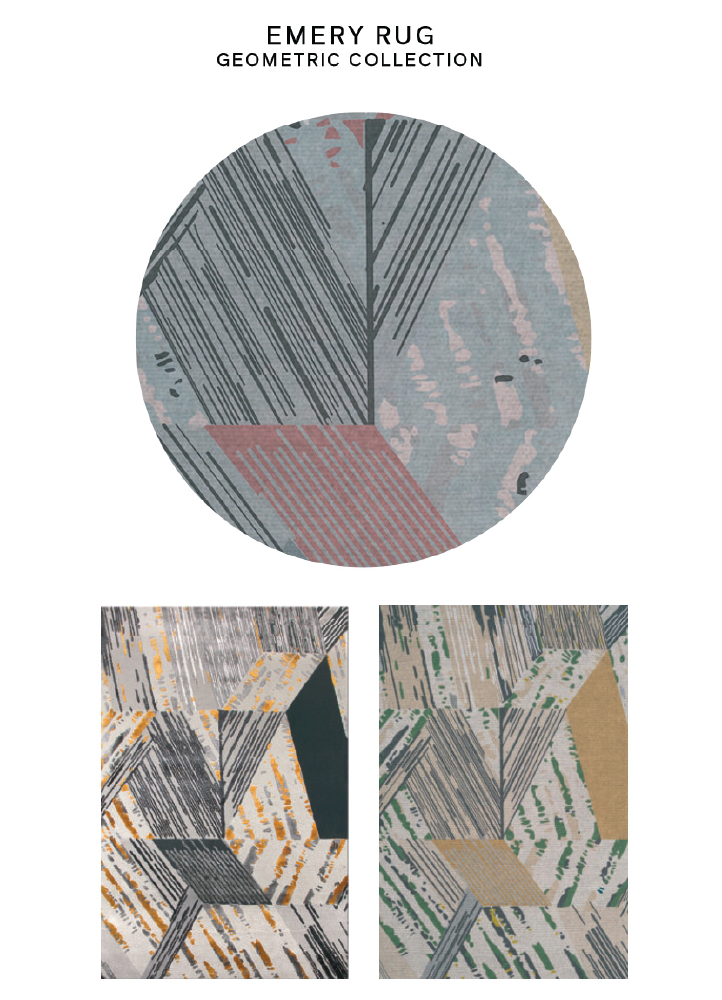 Emery Rug is inspired by different types of metamorphic rocks that are strongly animated. A handcrafted item that combines hand-tuffed and ertufted techniques with different materials – natural wool and botanical silk.